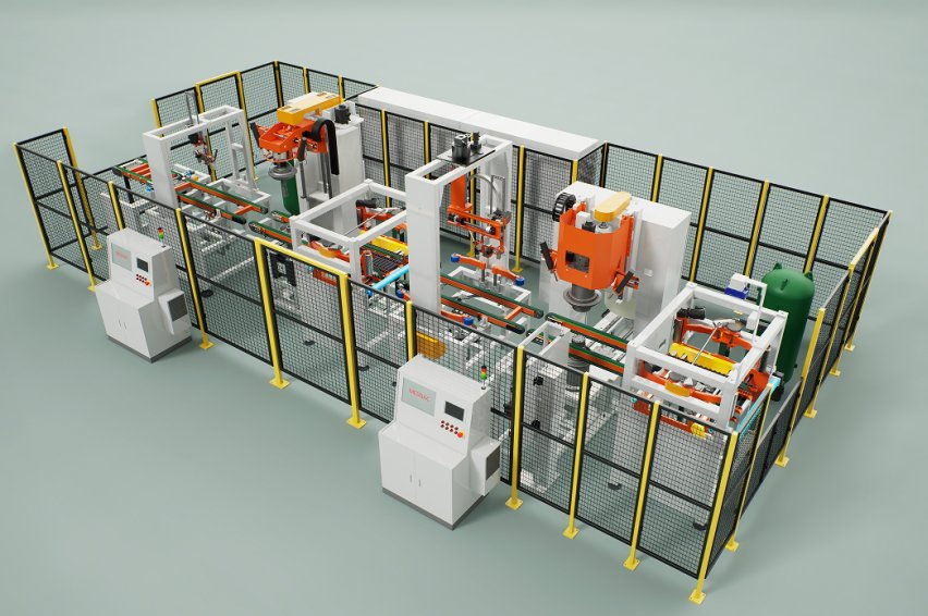 據了解,1320半鋼子午胎兩段一次法成型機于2022年3月開(kāi)始研發(fā),2023年2月成功下線(xiàn)。本機型采用一體設計,占地面積為15m*15.5m,整機操作人員定員1人,生產(chǎn)效率單胎循環(huán)時(shí)間38-40 s,目前單班產(chǎn)量最高達到738條,日產(chǎn)突破1410條;成型過(guò)程無(wú)人干預。一段鼓采用大徑平鼓全自動(dòng)貼合,胎側也采用平鼓自動(dòng)貼合且自動(dòng)接頭,實(shí)現一段生產(chǎn)過(guò)程中無(wú)人干預。新機型打破了傳統的二次法機型分為一段、二段兩臺獨立的設備布局,將一段、二段融合為一體;實(shí)現胎胚筒一段至二段自動(dòng)傳遞、二段全自動(dòng)運行。此外還具備機外上鋼圈、各種膠料(包括胎側)全自動(dòng)貼合、整個(gè)過(guò)程中設備運行區域無(wú)人化生產(chǎn)等特點(diǎn)。