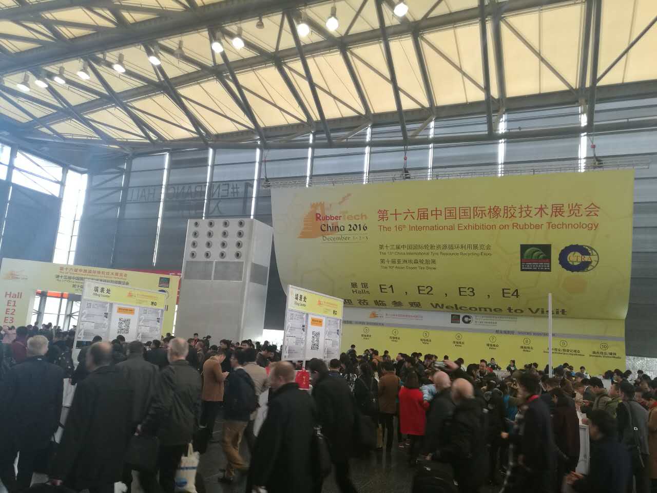 E4館4C439,您來(lái)了嗎?2016年第十六屆中國國際橡膠技術(shù)展覽會(huì )第十屆亞洲埃森輪胎展覽會(huì )于12月1-3日在上海新國際博覽中心順利召開(kāi)。此屆展會(huì )參展商近600家,共四個(gè)展館,展出面積近40000平方米。是橡膠行業(yè)每年翹首企盼的一次行業(yè)盛會(huì )。 展會(huì )入口處 全國橡膠塑料設計技術(shù)中心作為此次展會(huì )的支持單位,應邀參加了展會(huì ),展位號E4館4C439。 由全國橡塑中心開(kāi)發(fā)的“中國橡塑裝備APP”于2016年10月底剛剛發(fā)布,這是第一次在展會(huì )亮相。這一平臺的推出將加速橡塑行業(yè)企業(yè)信息網(wǎng)絡(luò )化建設,推進(jìn)橡塑信息新媒體發(fā)展,將會(huì )是未來(lái)了解中國橡塑行業(yè)的重要窗口。展會(huì )期間,企業(yè)用戶(hù)注冊免年費,個(gè)人用戶(hù)注冊更有驚喜等著(zhù)您。 全國橡塑中心展位 ?。ㄈ珖鹚苤行闹敶碇袊秃突た辈煸O計協(xié)會(huì )橡膠塑料設計專(zhuān)業(yè)委員會(huì )、全國橡膠塑料技術(shù)專(zhuān)家委員會(huì )、全國橡膠塑料設計技術(shù)中心、全國橡塑機械信息中心、石油和化工橡塑節能環(huán)保中心、《橡塑技術(shù)與裝備》《橡塑智造與節能環(huán)?!贰督ㄔO項目管理與工程總承包》雜志社?。? 展會(huì )期間,展會(huì )主辦方將同期舉辦兩個(gè)論壇,為行業(yè)同仁提供了一個(gè)很好的技術(shù)交流平臺。12月1-2日E2-M20會(huì )議室,召開(kāi)2016橡膠技術(shù)高峰論壇;12月2日E3-M21會(huì )議室,召開(kāi)2016智通制造專(zhuān)題論壇;12月1-2日E1展廳1A537,舉辦智輪胎精益生產(chǎn)安例分享會(huì )。 中國國際橡膠技術(shù)展覽會(huì ) 自1998年開(kāi)始,經(jīng)歷了多年的辦展歷程,現已成功舉辦十五屆。此展會(huì )為行業(yè)內企業(yè)進(jìn)行品牌宣傳及貿易促進(jìn)提供了平臺,已成為信息溝通、新技術(shù)交流的良好通道。伴隨著(zhù)國際橡膠工業(yè)的高速增長(cháng),此次第十六屆展會(huì )現已匯集展商近600家,展覽面積達到40000平方米,是國際領(lǐng)先的大型專(zhuān)業(yè)性展會(huì )。展商來(lái)自世界近30個(gè)國家和地區,集橡膠機械設備、橡膠化學(xué)品、橡膠原材料和橡膠制品和半成品為一體,是橡膠行業(yè)相關(guān)企業(yè)各個(gè)環(huán)節操作者不可錯過(guò)的年度盛會(huì )。 全國橡塑中心 供稿 Rp-04 2016-12-01 【中心動(dòng)態(tài)】