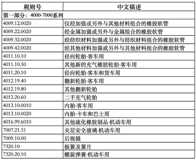 美國對汽車(chē)零部件加征25%關(guān)稅,正式實(shí)施當地時(shí)間5月3日,美國向所有國家/地區進(jìn)口的關(guān)鍵汽車(chē)零部件征收25%的關(guān)稅,對用于消費的進(jìn)口商品或從倉庫中提取用于消費的商品生效。橡膠類(lèi)零部件包含其中。25%新關(guān)稅主要覆蓋各類(lèi)乘用車(chē)(轎車(chē)、運動(dòng)型多用途車(chē)、跨界多用途車(chē)、小型貨車(chē)和廂式貨車(chē))、輕型卡車(chē)車(chē)型的零部件?! ≈挥蟹稀睹滥訁f(xié)定》(USMCA)特殊關(guān)稅待遇條件的商品免征 25% 新關(guān)稅,但不包括汽車(chē)散裝件或零部件組合?! 〈送?,25%新關(guān)稅采用疊加征收方式,在原有關(guān)稅基礎上額外征收,并且所有適用的反傾銷(xiāo)稅、反補貼稅或其他關(guān)稅和費用仍應繼續征收?! 饷綀蟮?,住友橡膠、普利司通、優(yōu)科豪馬、大陸集團、固特異承壓較大,紛紛宣布采取漲價(jià)方式,對特朗普“25%關(guān)稅”進(jìn)行回應。 2025-05-08 【輪胎】 -