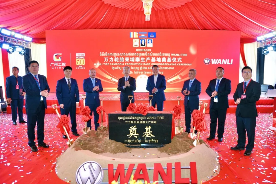 年產(chǎn)輪胎1120萬(wàn)條項目正式啟動(dòng)!1月12日,廣州工控集團旗下萬(wàn)力輪胎柬埔寨生產(chǎn)基地奠基儀式在柬埔寨柴楨省新巴域特區舉行,整個(gè)基地建成后將可年產(chǎn)1000萬(wàn)條半鋼子午線(xiàn)胎和120萬(wàn)條全鋼子午線(xiàn)胎,其不僅是萬(wàn)力輪胎在海外的首個(gè)項目,也是廣州工控集團加速推進(jìn)全球化戰略,積極參與高質(zhì)量共建“一帶一路”的關(guān)鍵一步?! 〖砥艺笔紫嗉姘l(fā)展理事會(huì )第一副主席孫占托,中國駐柬埔寨大使汪文斌,柬埔寨投資委員會(huì )秘書(shū)長(cháng)謝無(wú)敵,柬埔寨柴楨省省長(cháng)奔菩沙,廣州工控集團黨委書(shū)記、董事長(cháng)景廣軍出席并見(jiàn)證這一振奮人心的時(shí)刻,萬(wàn)力輪胎、中建四局等相關(guān)負責人參加活動(dòng)?! 〈舜蔚旎纳a(chǎn)基地由萬(wàn)力輪胎建設打造,分為兩期建設,其中一期投資額約2.39億美元,總占地面積約32公頃,投產(chǎn)后將形成年產(chǎn)600萬(wàn)條半鋼子午線(xiàn)胎生產(chǎn)能力?! 「鶕巹?,該基地將打造中國輪胎智能制造海外標桿,推動(dòng)實(shí)現工廠(chǎng)的數字化管理、自動(dòng)化生產(chǎn)、智能化運營(yíng),并針對當地市場(chǎng)需求,注重節能降耗,實(shí)現產(chǎn)品個(gè)性定制等特色化滿(mǎn)足。同時(shí),依托該項目的實(shí)施建設,促進(jìn)萬(wàn)力輪胎與柬埔寨當地政府和企業(yè)開(kāi)展進(jìn)一步合作,提升廣州工控集團的國際品牌形象和知名度,進(jìn)一步增強中國輪胎品牌在東南亞乃至全球范圍的競爭力和影響力?! O占托對萬(wàn)力輪胎成功在柬埔寨落地首個(gè)海外工廠(chǎng)表示祝賀,他指出,在“一帶一路”倡議下,柬中兩國關(guān)系緊密而友好,各類(lèi)大型投資項目正在不斷涌現并有序推進(jìn)。當地職能部門(mén)將秉持積極與專(zhuān)業(yè)的態(tài)度,全力支持萬(wàn)力輪胎在柬埔寨生產(chǎn)基地的建設,相信通過(guò)萬(wàn)力輪胎的帶動(dòng),也將吸引更多中國大型企業(yè)到柬埔寨投資興業(yè)?! ⊥粑谋笤谥罗o中表示,今天奠基開(kāi)工的萬(wàn)力輪胎生產(chǎn)基地將為中柬合作畫(huà)卷寫(xiě)下濃墨重彩的一筆。柬埔寨有著(zhù)得天獨厚的橡膠資源優(yōu)勢,中資輪胎企業(yè)與當地橡膠產(chǎn)業(yè)緊密對接,不僅能夠助力將輪胎資源轉化為高附加值的輪胎產(chǎn)品,更有望以輪胎制造為樞紐打通上下游產(chǎn)業(yè)鏈。中國駐柬使館將為中資企業(yè)營(yíng)造良好環(huán)境,創(chuàng )造有利條件,穩步推進(jìn)“工業(yè)發(fā)展走廊”的建設?! 【皬V軍在致辭中表示,在中國制造業(yè)轉型升級的大背景下,廣州工控集團與萬(wàn)力輪胎緊抓機遇,主動(dòng)開(kāi)拓海外產(chǎn)業(yè)布局,推進(jìn)國際化戰略落地生根。他指出,萬(wàn)力輪胎首個(gè)海外工廠(chǎng)在柬埔寨正式奠基,不僅是萬(wàn)力輪胎海外發(fā)展的里程碑,也是廣州工控集團深化國際合作、推動(dòng)高質(zhì)量發(fā)展的重要一步。 2025-01-13 【輪胎】 -